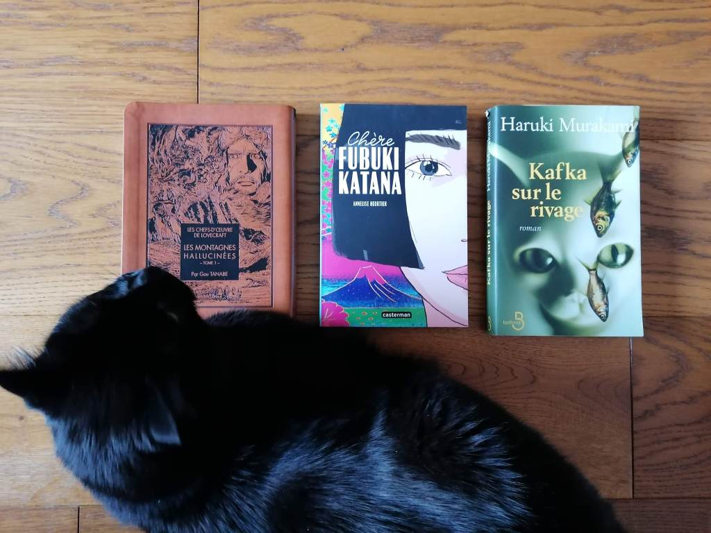 2. Je te souhaite de très belles lectures 🙂 J’avais adoré Le démon de l’île solitaire d’Edogawa Ranpo et La maison où je suis mort autrefois de Keigo Higashino. Quant au chat, il va se régaler avec Kafka sur le rivage de Haruki Murakami 😉