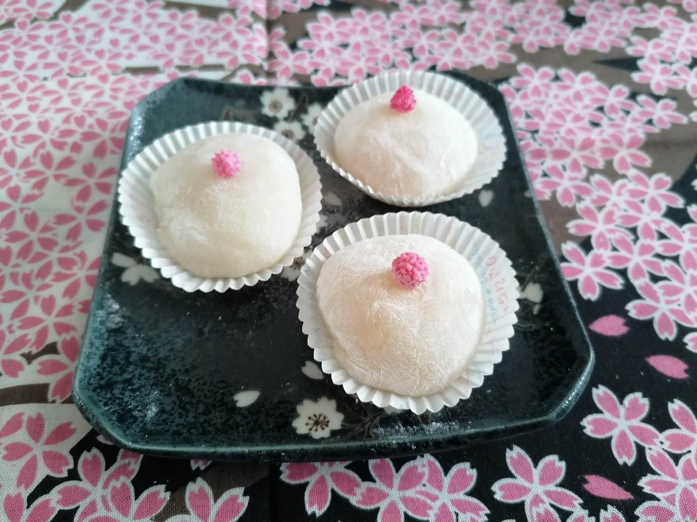 Je me suis servie de la recette imagée de Mathilda (La Cuisine en Bandoulière) pour réaliser 8 mochi. Pour la garniture et quelques conseils supplémentaires, j’ai lu avec intérêt les explications de Bernard (La Cuisine de Bernard).