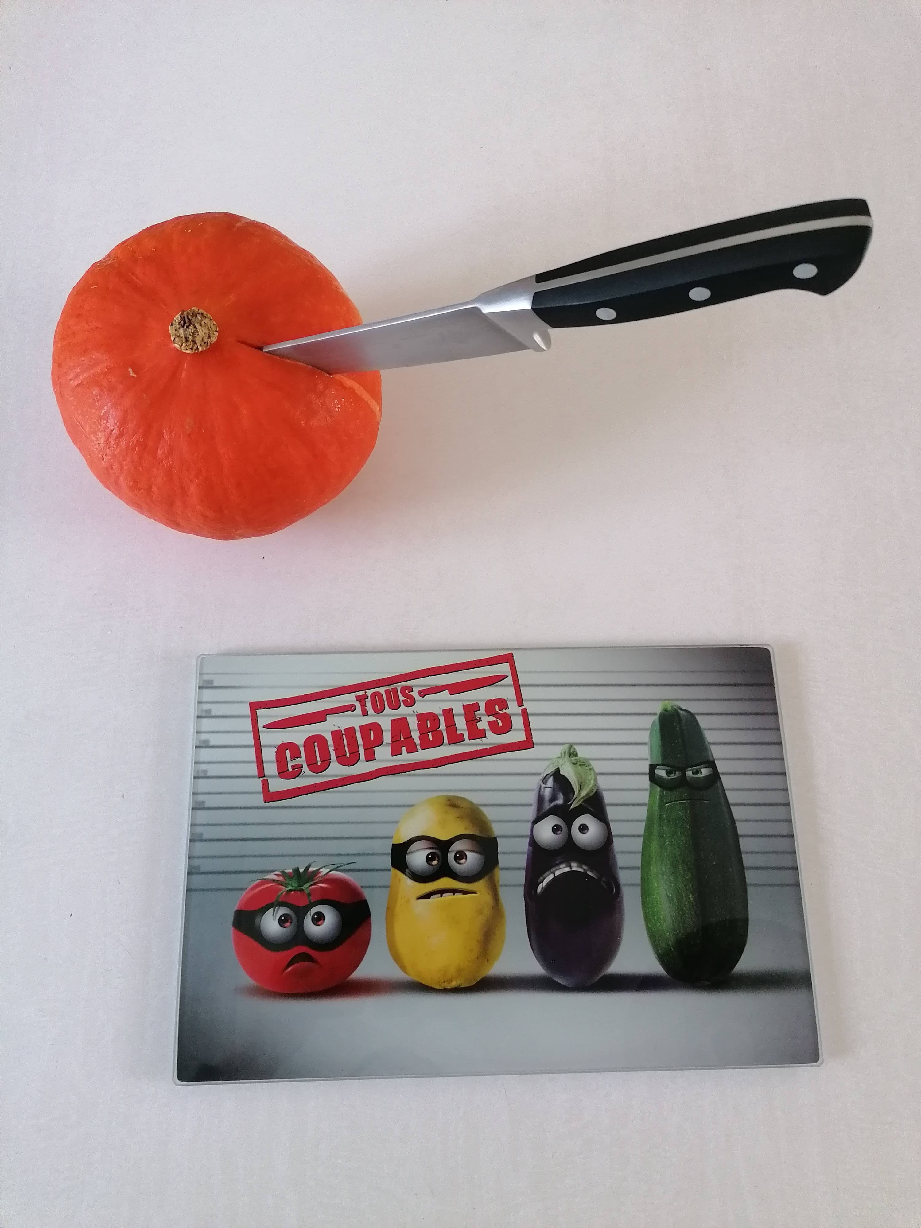 Qui dit cake au potimarron dit découpage de courge en tranches et envoie la purée Hilda ! J’ai sorti ma planche à découper infernale, le couteau qui va bien mais où il ne faut pas laisser ses doigts et je me suis occupée de mon premier potimarron de la saison ! Je le passe toujours sous l’eau car je le cuis ensuite avec la peau pour le réduire en purée!