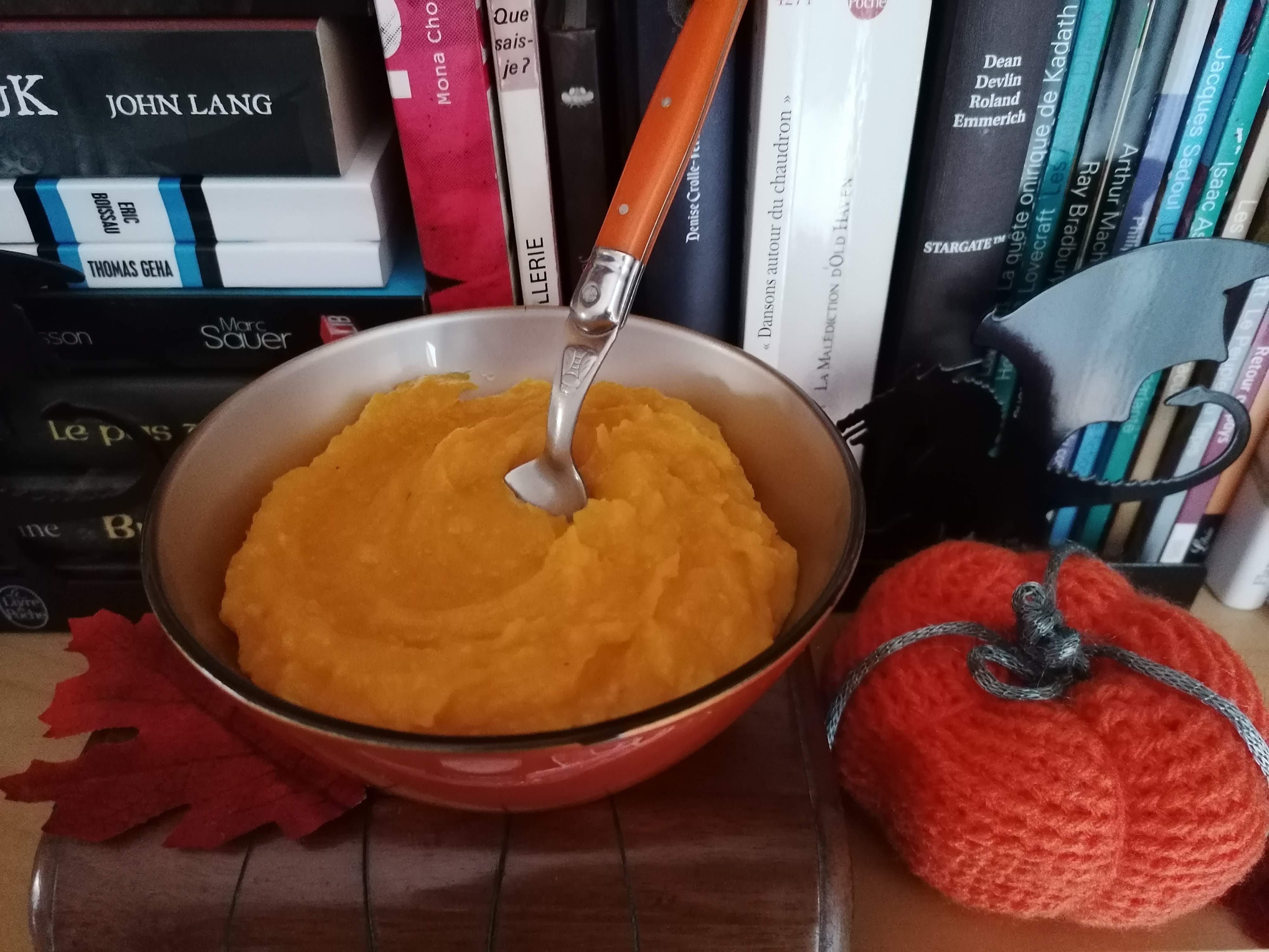 Au menu hier soir, une onctueuse purée maison pomme de terre-potimarron ! Un peu de lait, une noix de beurre, une pointe de noix de muscade et un peu de sel.