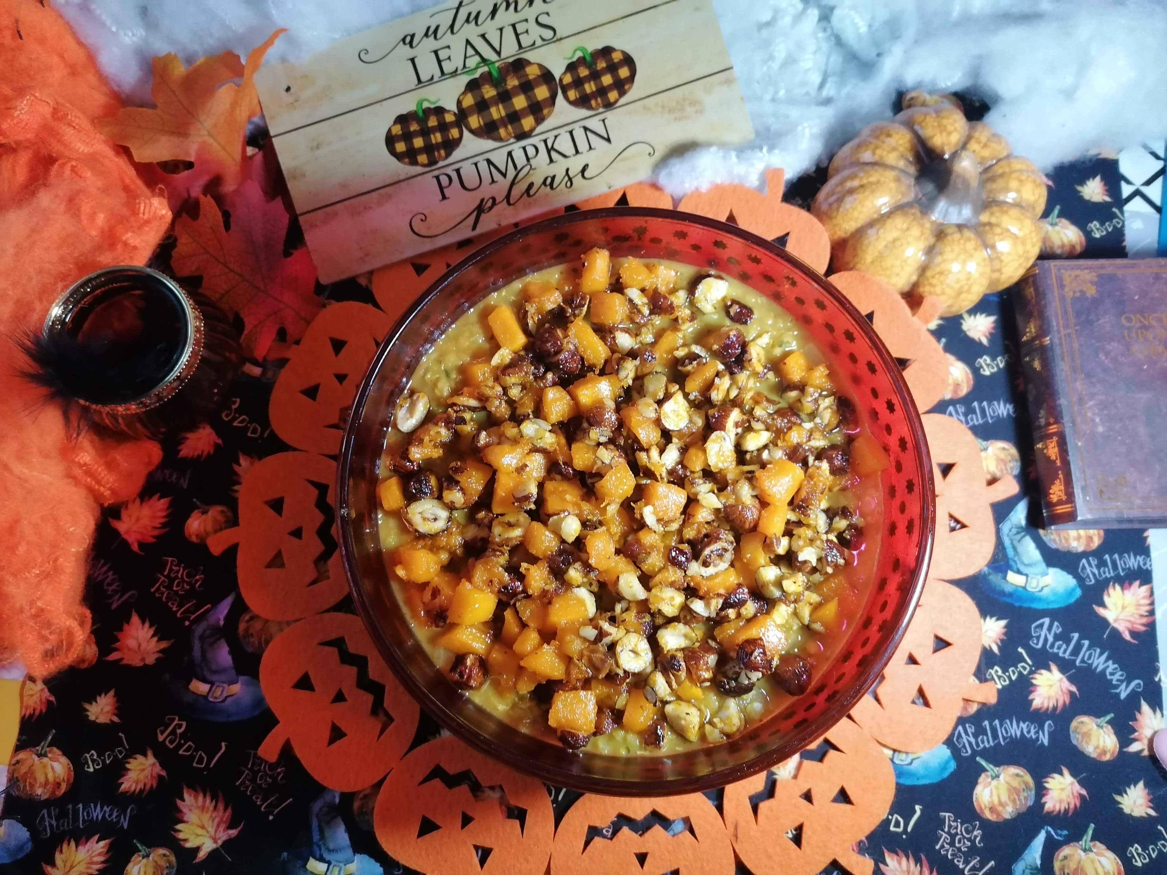 Aujourd’hui je vous propose un dahl aux saveurs automnales : des lentilles corail, du potimarron, des noisettes, des épices, ça sent bon dans la cuisine !