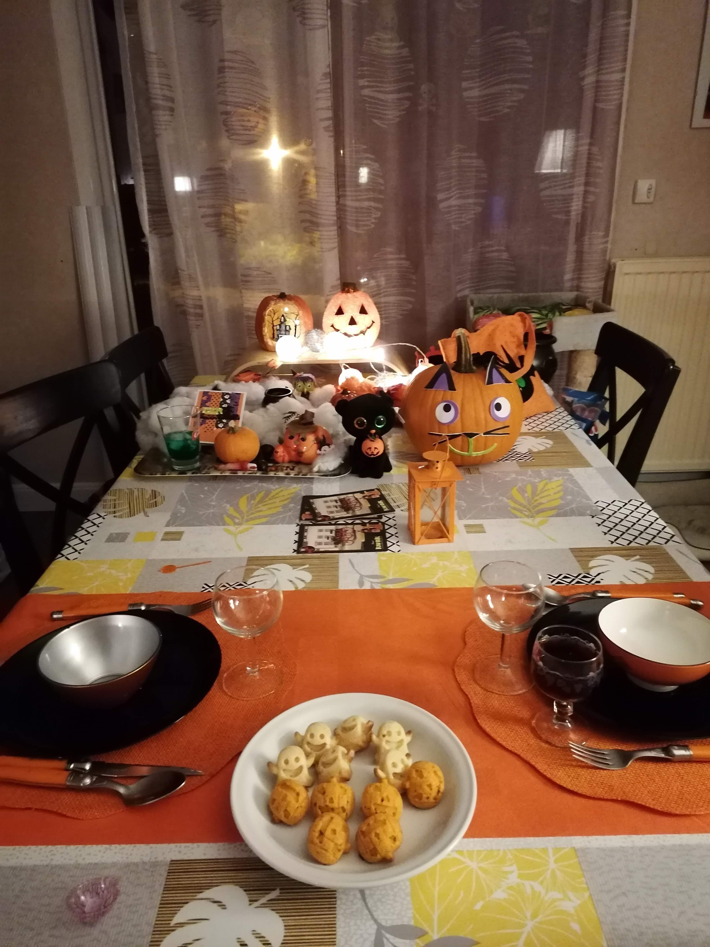 Notre repas Halloweenesque ! On s’est régalé avec les mini courges farcies ! On a eu de la visite !