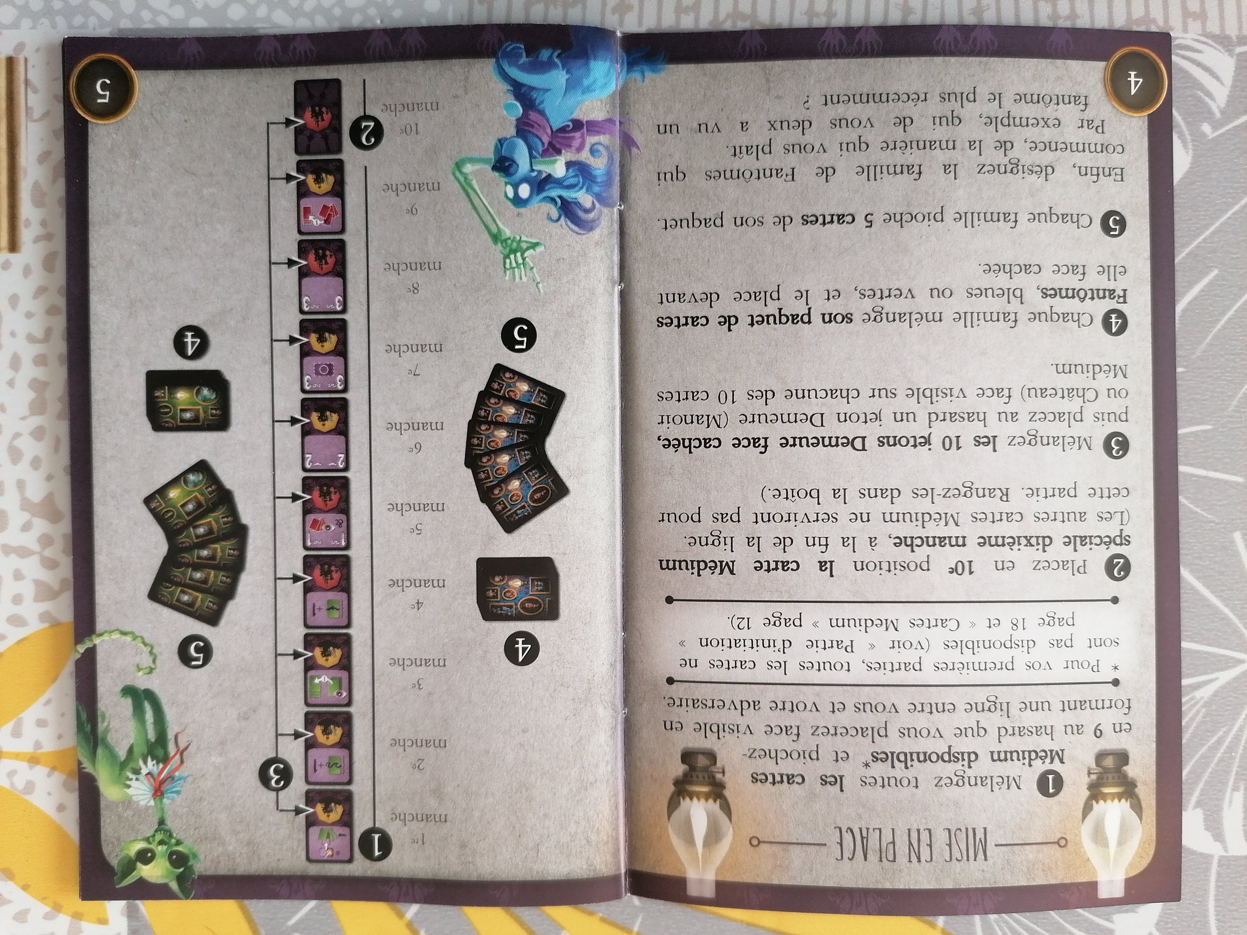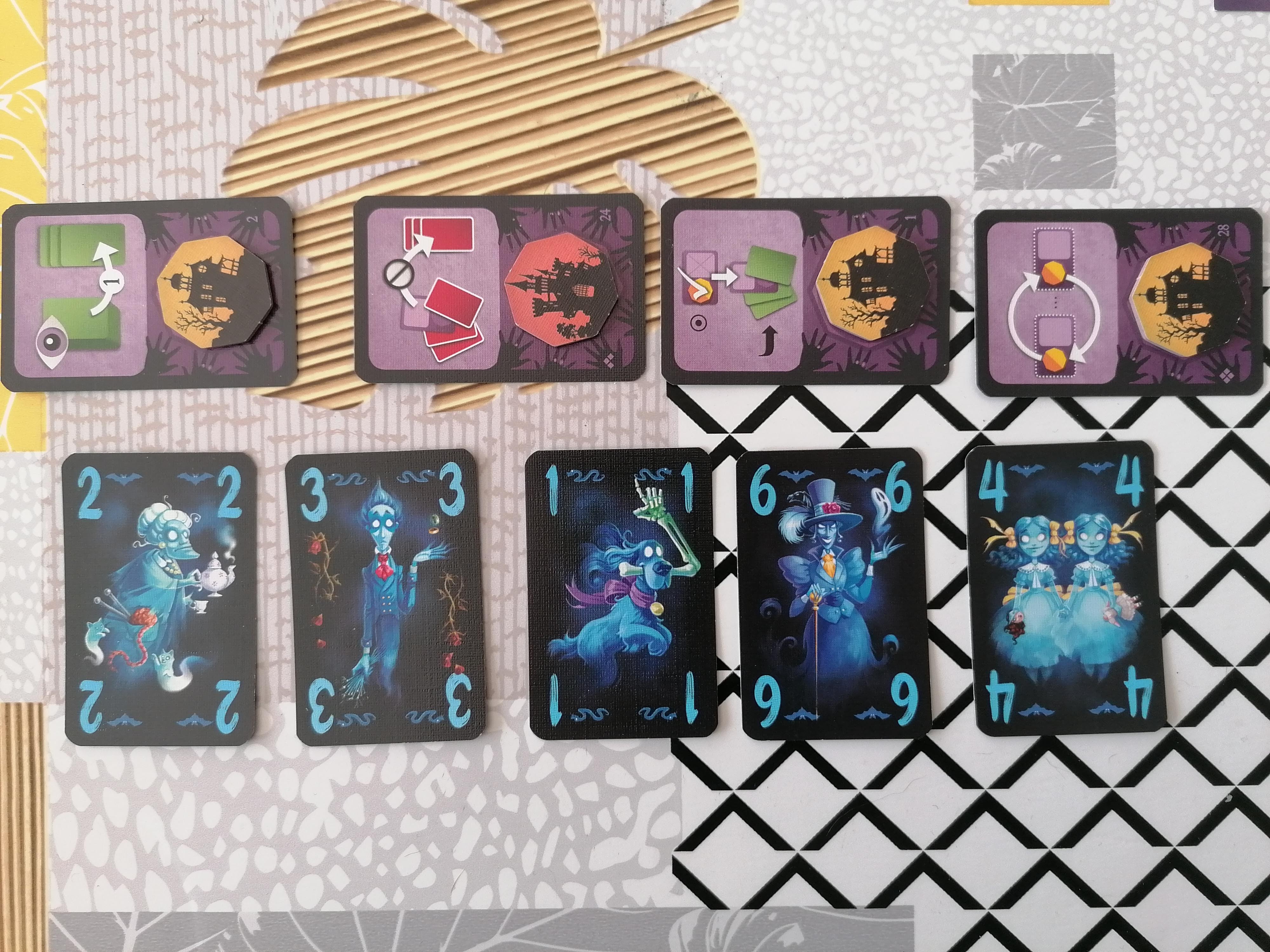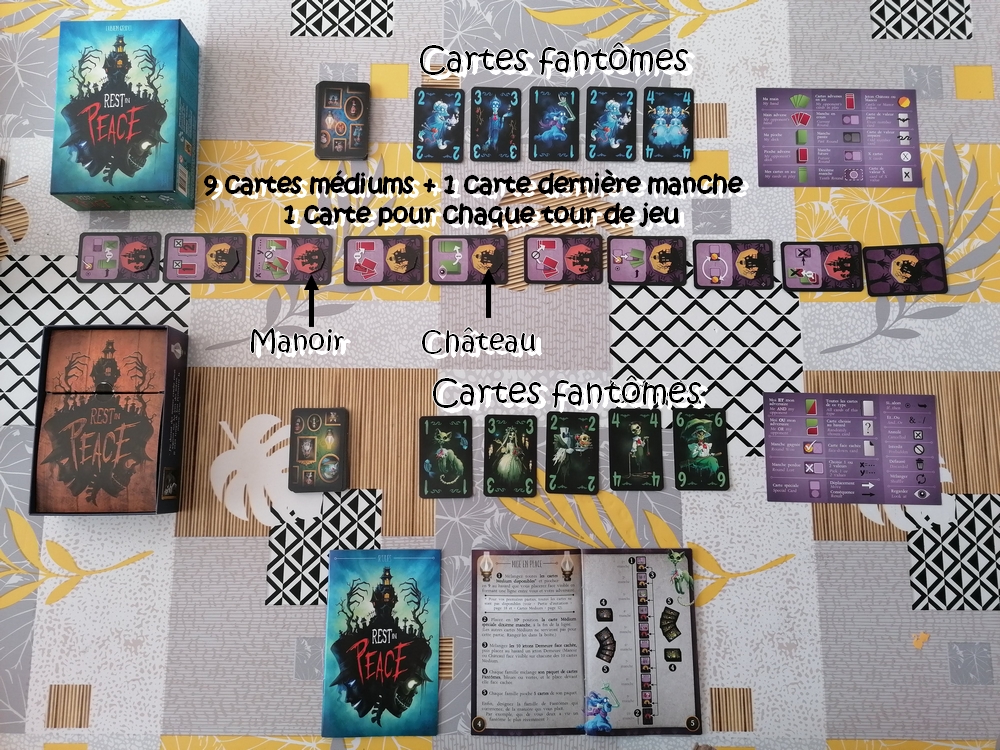 Pendant dix tours, les joueurs vont donc essayer de s’approprier les jetons manoirs ou châteaux grâce aux points des cartes-fantômes ou tenter de récupérer la carte médium du tour en cédant la propriété à l’adversaire !