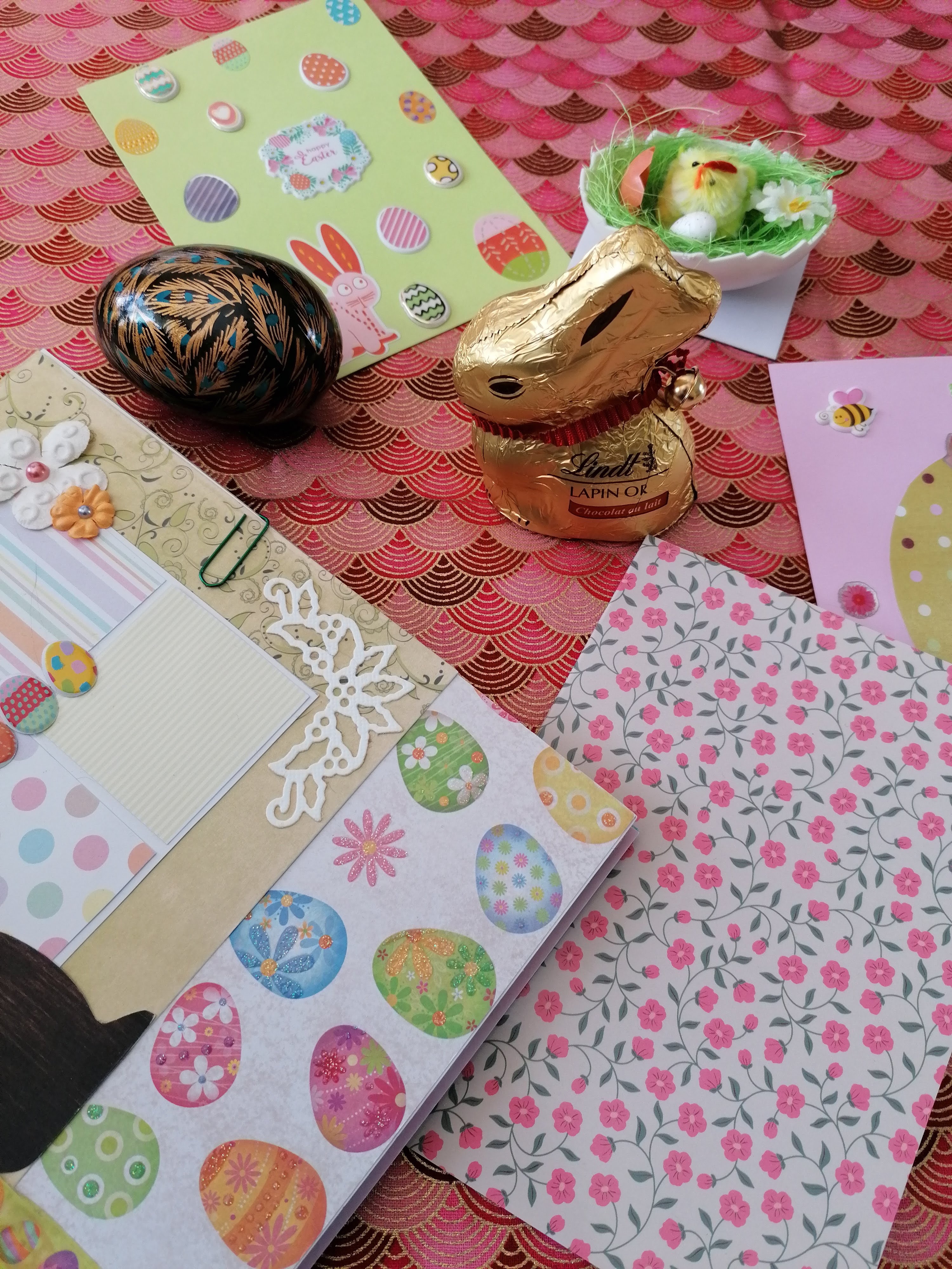 J’en profite aussi pour partager quelques petits accessoires personnels autour de pâques et faire un petit clin d’œil à Blandine qui m’a envoyé la jolie carte fleurie et un délicieux lapin en chocolat entre-autres. 🙏