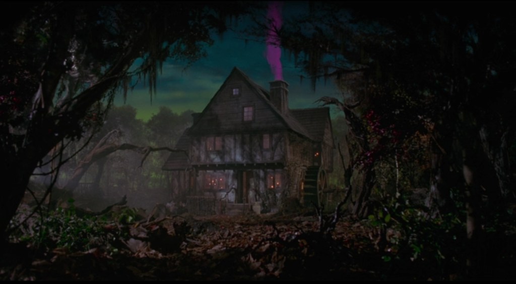 Les sorcières d’Hocus Pocus sont méchantes et stupides. On ne connaît par leur histoire, elles sont assez caricaturales, ce sont les méchantes sorcières Disney ! Leur seul souhait est de récupérer leur précieux livre de magie (« Booooook », ci-dessous) et de rajeunir en sacrifiant les enfants. Leur cottage est situé dans la forêt, à l’écart du village.