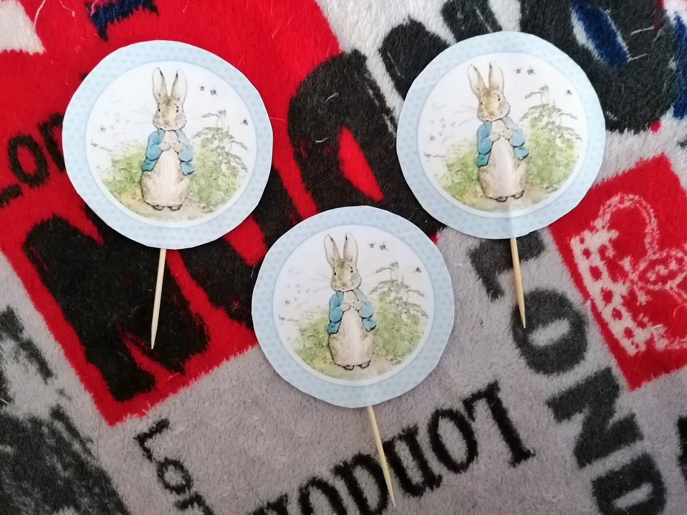 J’adore l’univers de Beatrix Potter, c’est tellement mignon ! J’ai eu l’idée de faire des (cup)cake toppers (pics à gâteau) ! J’en ai déjà fait pour Halloween, pour le Mois américain et pour la Saint-Patrick. C’est simple à réaliser avec une bonne imprimante et du papier assez épais.