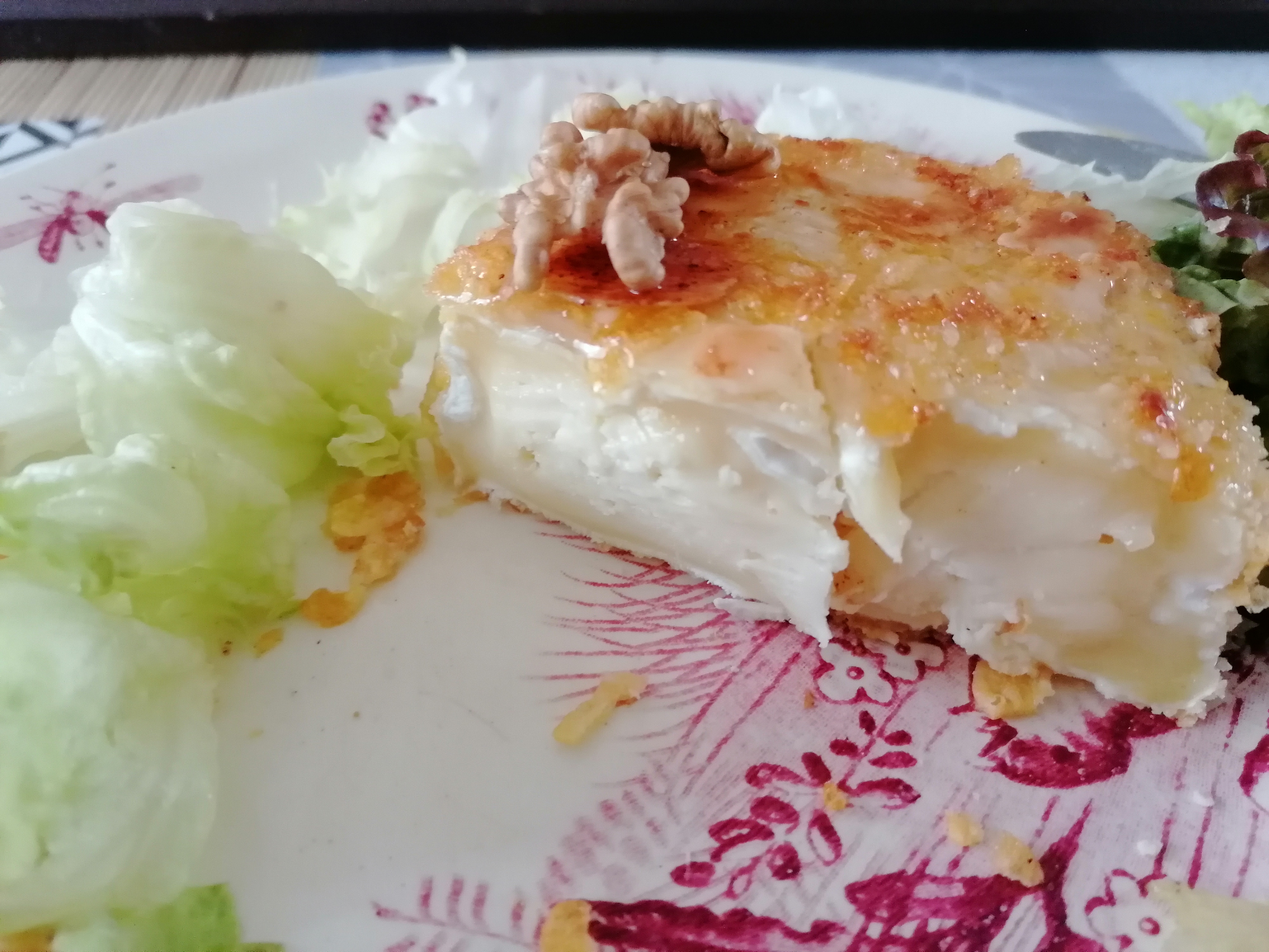 Ce n’est pas un plat très diététique, c’est sûr malgré la salade et le petit format du fromage.