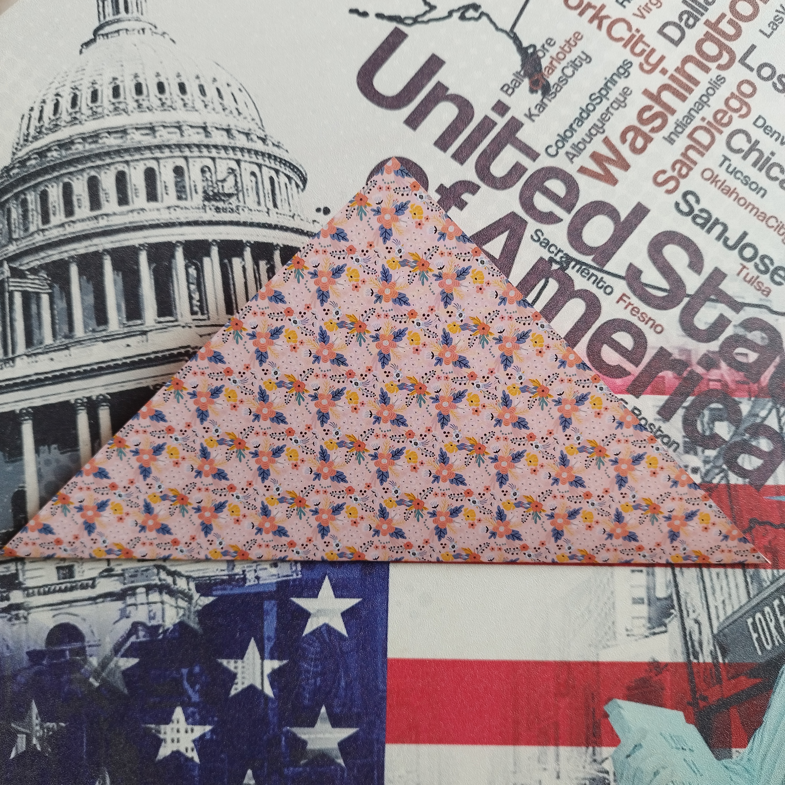 1. Je plie en deux ma feuille de papier sur la diagonale afin d’obtenir un triangle (fig 1 en partant du bas).