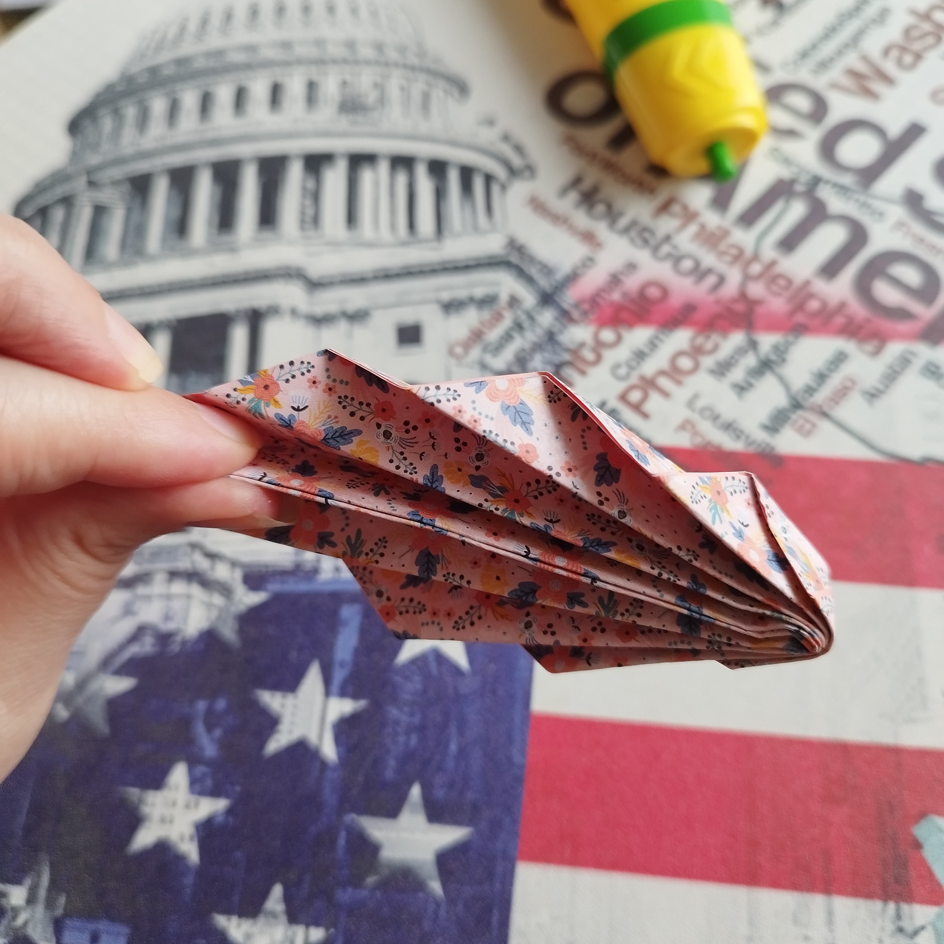 2. En partant de la base, je plie en accordéon jusqu’à la pointe (fig 3 à 5).
