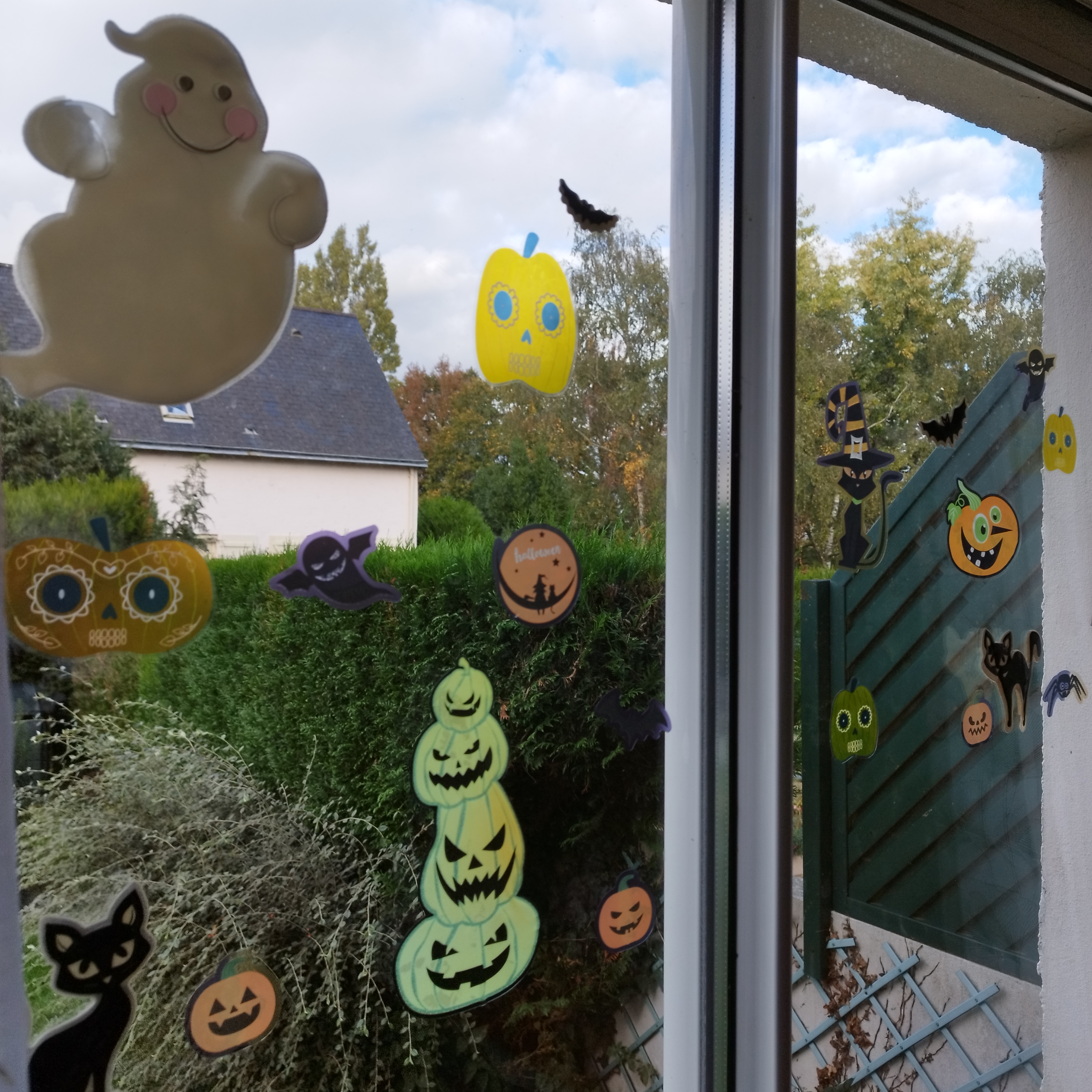 J’ai ensuite installé mes coussins halloweenesques dans le salon (photo ci-dessus), décoré les baies vitrées, les fenêtres, et on a ensuite pris le tea time de 18h ! Mr Hilde s’est occupé du joli plaid orange sur le canapé.