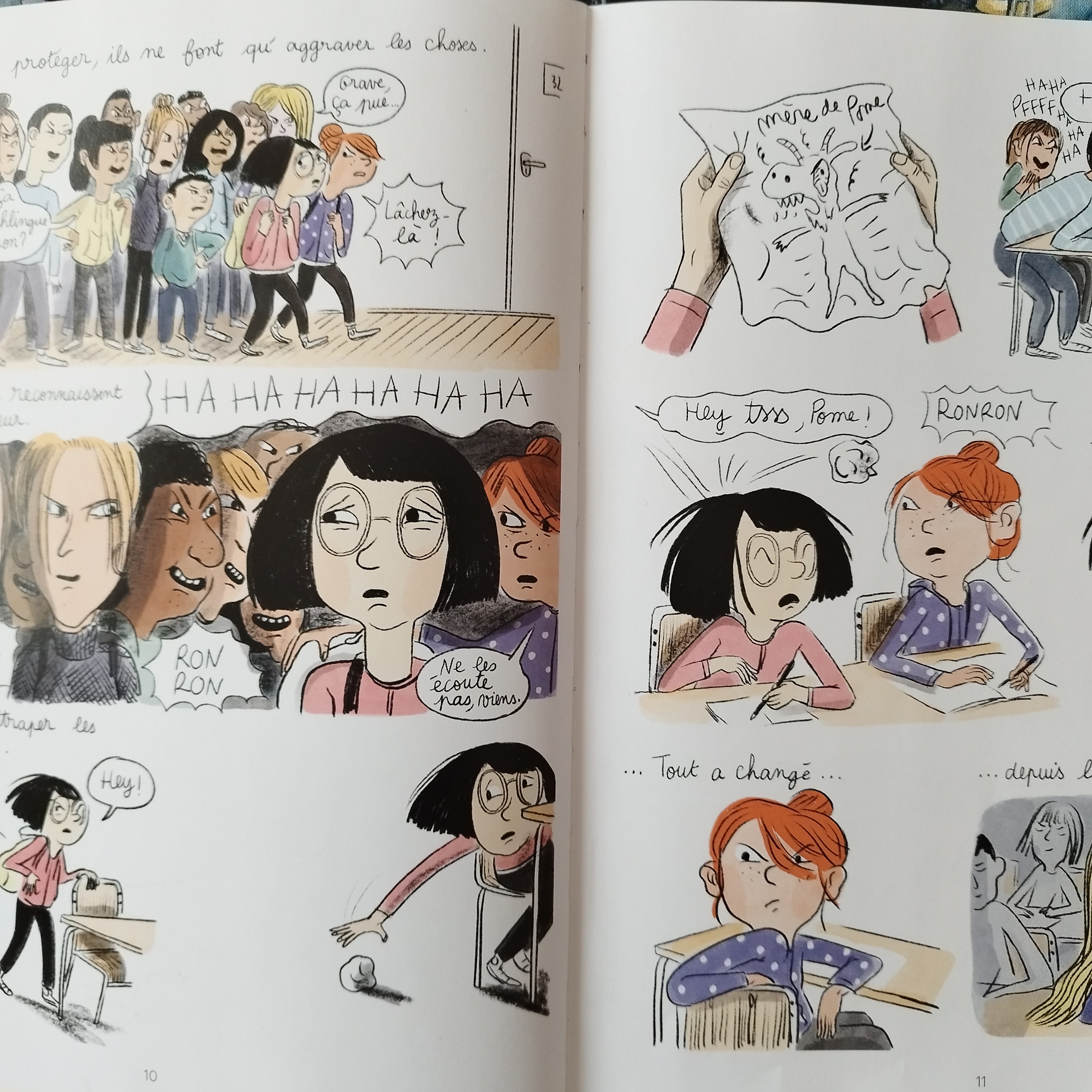 Une lecture encore bien agréable et un troisième tome toujours fidèle au roman. L’histoire est plus sombre. Pome et Verte sont harcelées, la mère de Pome accusée de troubler la tranquillité de l’immeuble. La colère monte dans le quartier, une colère surnaturelle.