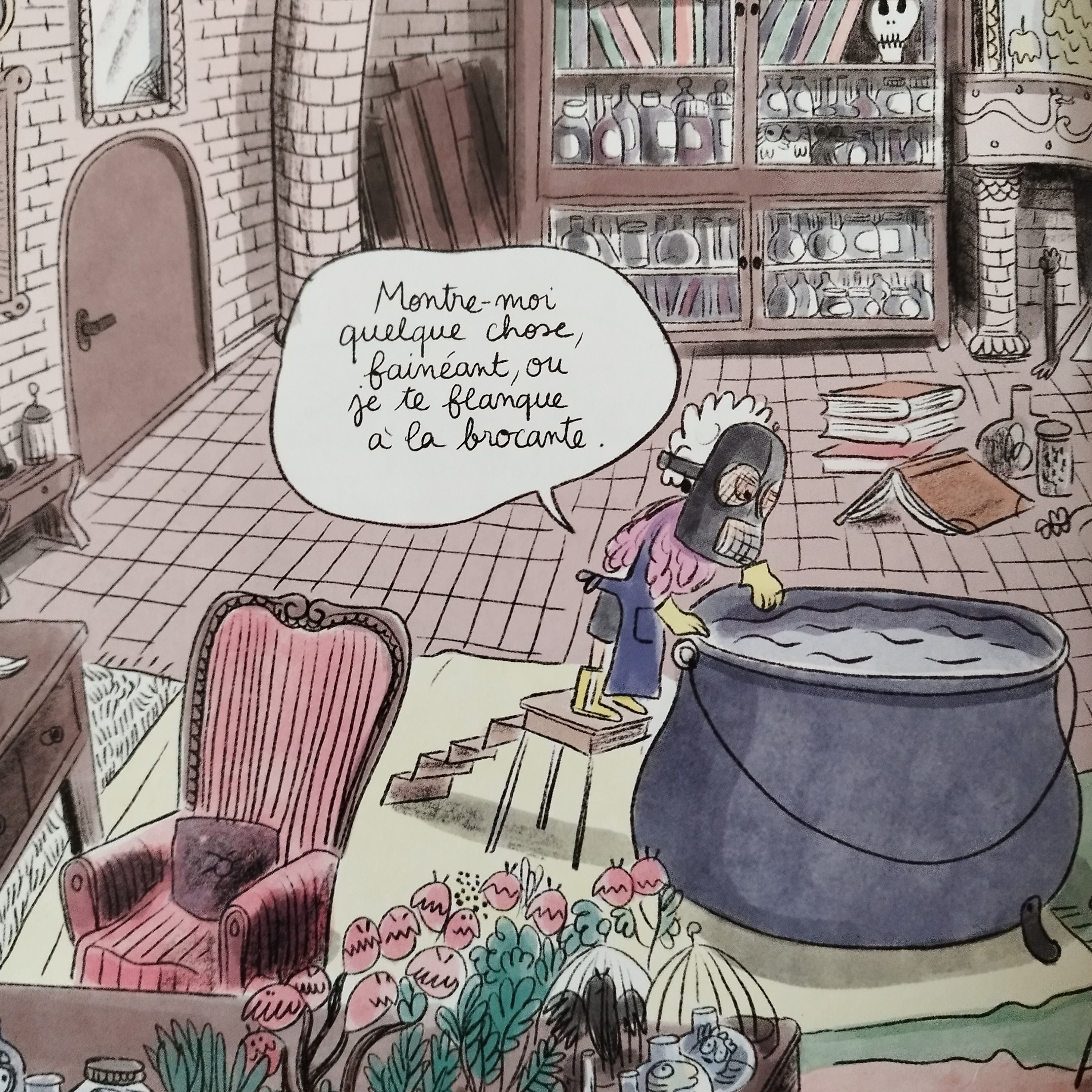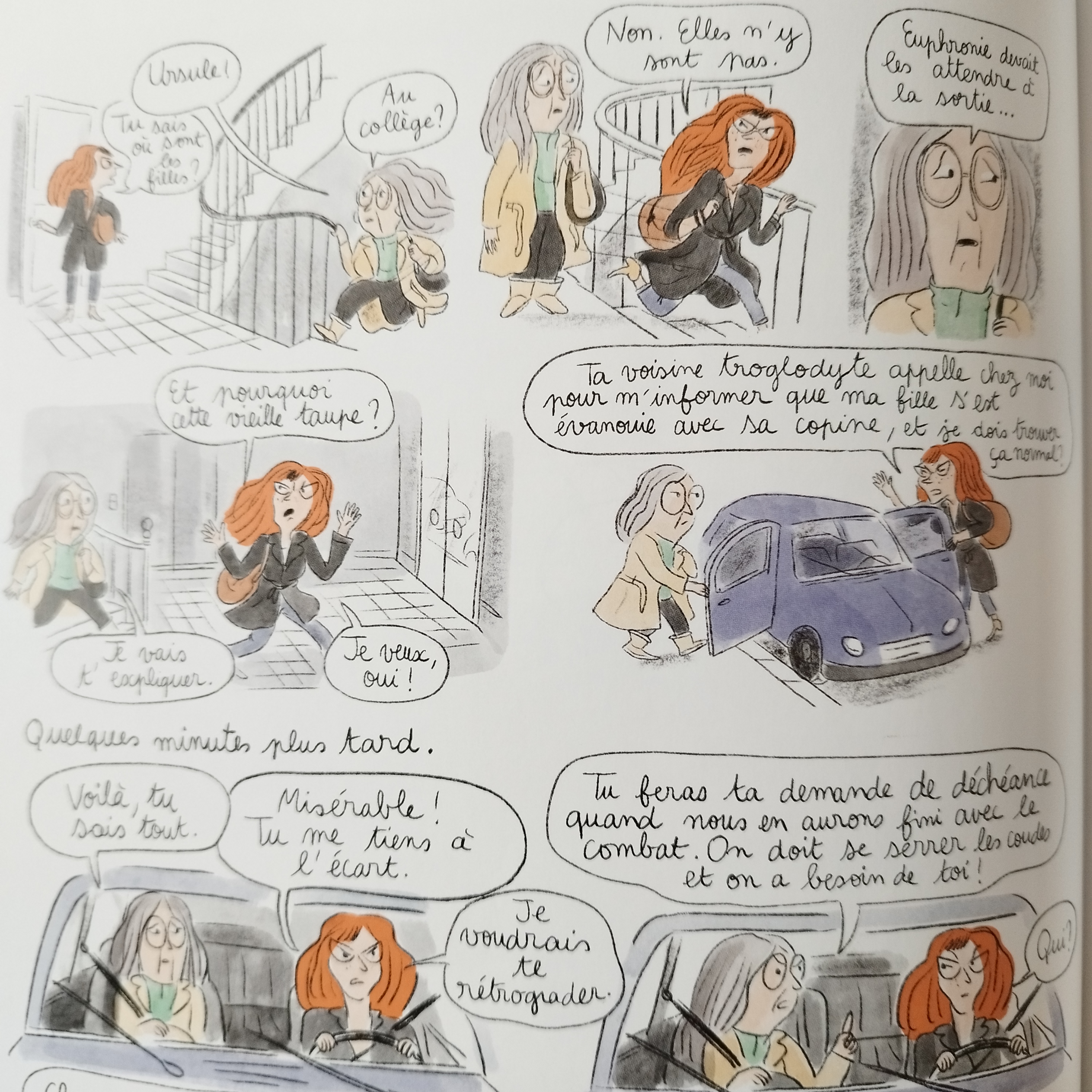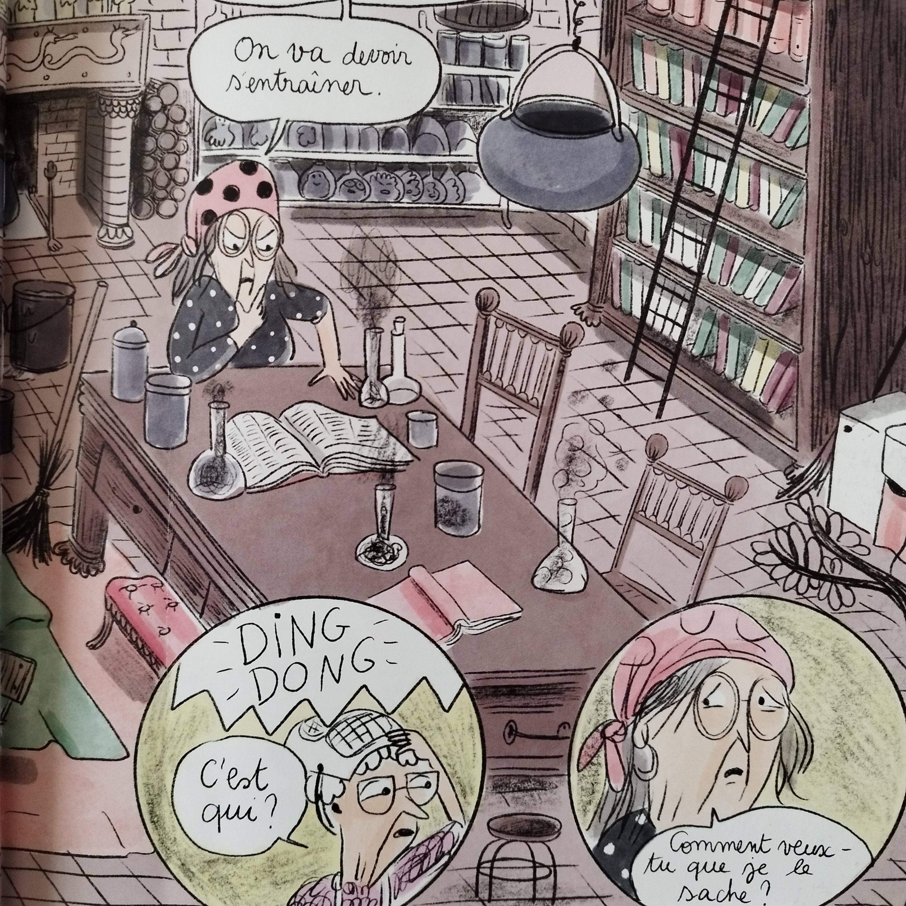 Les personnages sont toujours aussi attachants, les proches de Verte bienveillants. J’ai un faible pour la mère, Ursule et la grand-mère, Anastabotte. J’aime beaucoup le personnage de Soufi aussi. Il a parfois quelques difficultés à trouver sa place dans cet univers de sorcières qui ont parfois des sautes d’humeur. Ah l’adolescence et le collège !