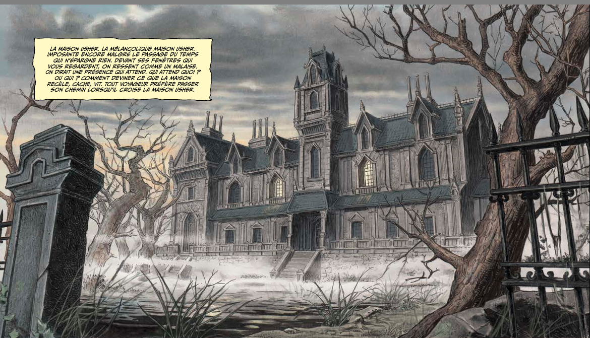 Les dessins sont superbes. Il y a une série sur Netflix qui s’appelle la chute de la maison Usher, je vais regarder s’il s’agit d’une adaptation de la nouvelle.