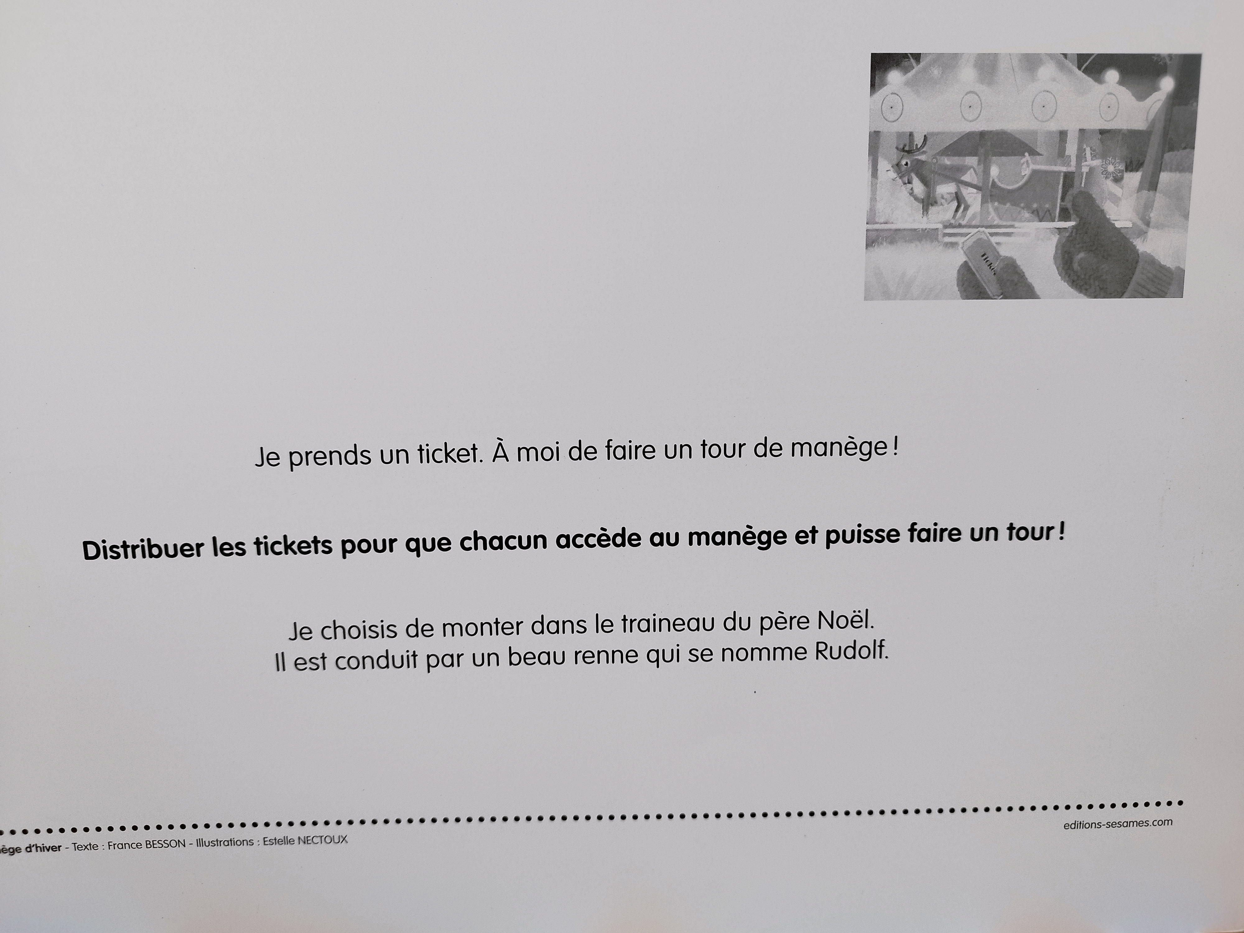 Comme je suis bénévole à la BCD de l’école maternelle de ma commune et que l’équipe est super sympa, nous avons improvisé une petite animation autour de ce Manège d’hiver deux jeudis de suite avec des enfants de PS et GS.