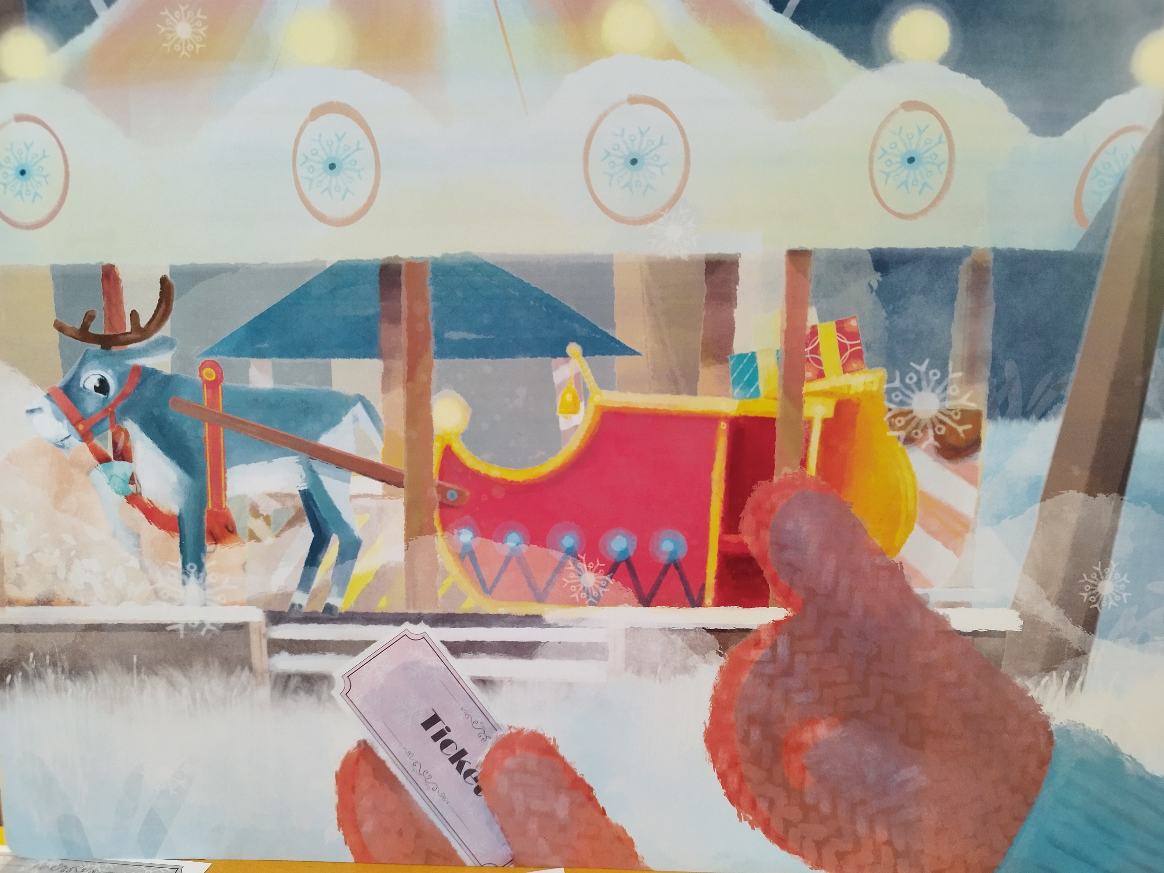 « Alors le vent se met à souffler. Quelques flocons tourbillonnent autour de nous. Le manège commence à tourner… et s’élève vers le ciel étoilé ! »