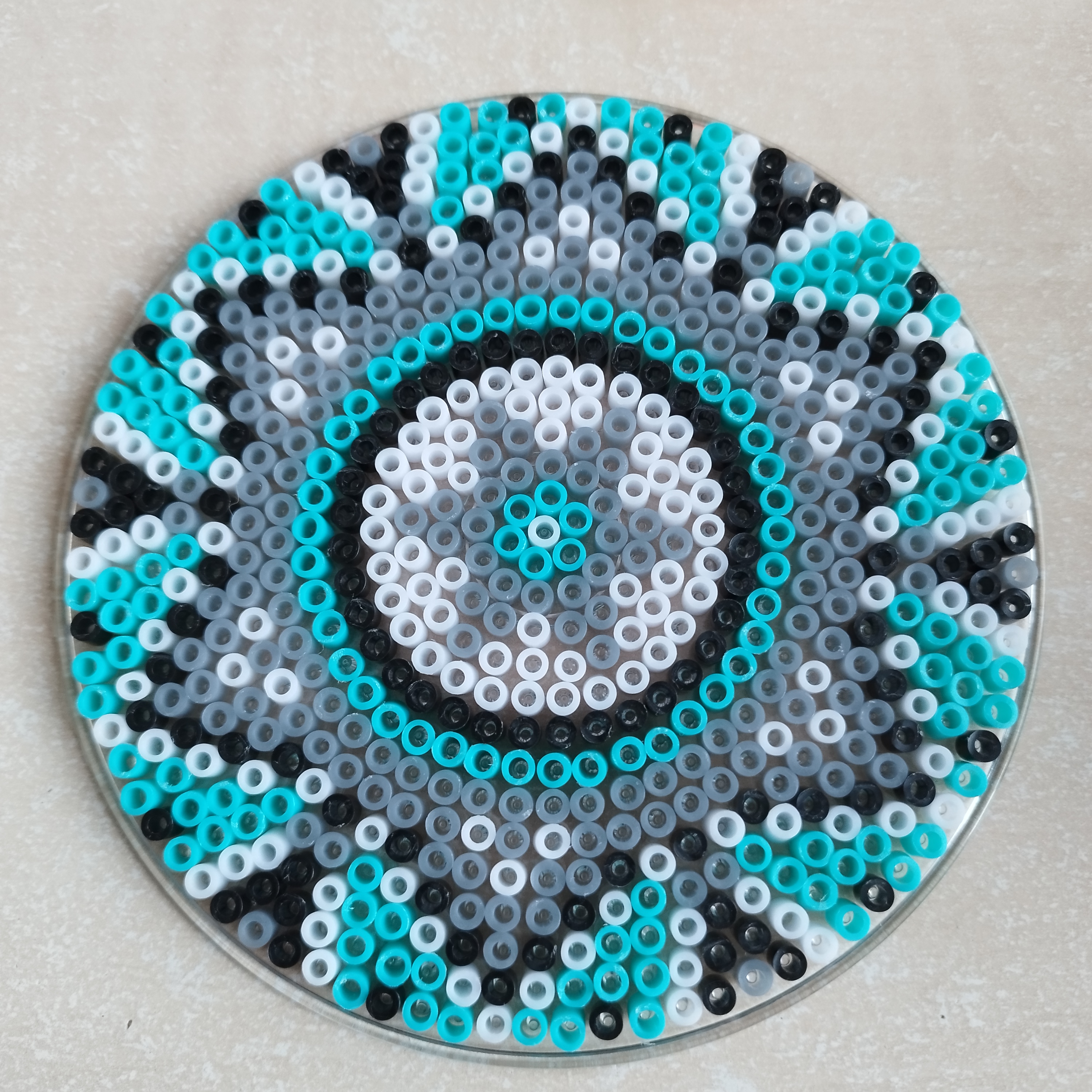 J’adore ce mandala, je le trouve vraiment beau mais il est gourmand en perles et j’ai loupé le repassage. Il est un peu gondolé et une perle se détache, c’est vraiment dommage, ça gâche un peu le plaisir.