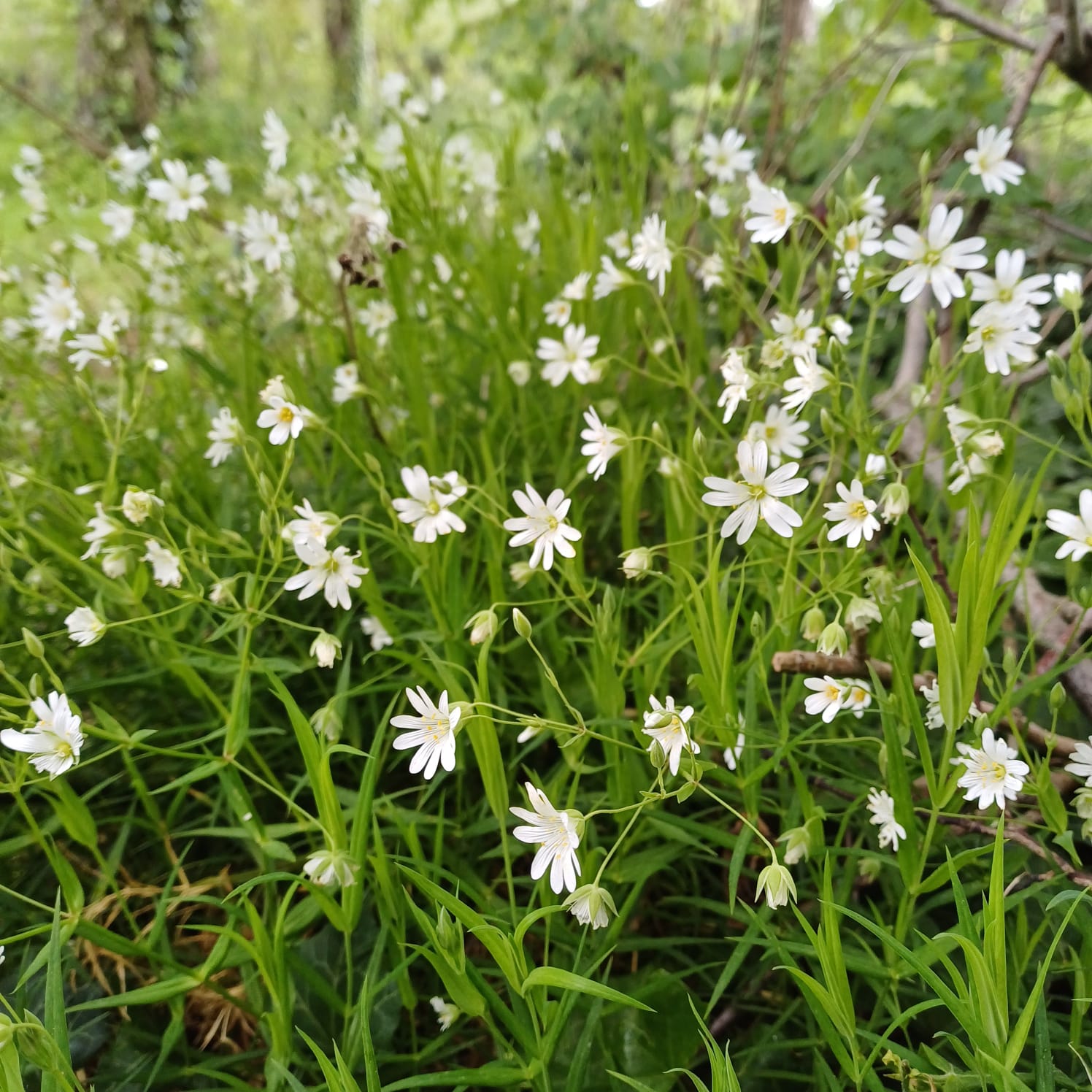 Plein de petites fleurs sur le chemin. J’adore les grosses bouloches blanches. ♥