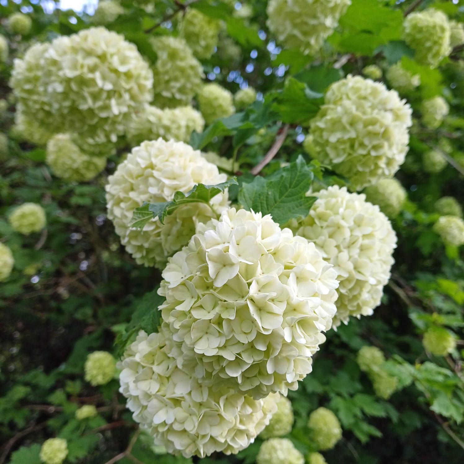 Comme c’est joli, merci de partager ces photos avec nous ! 🥰 Les grosses bouloches blanches (ca leur va bien comme nom d’ailleurs), ce sont des Viburnum, qu’on appelle aussi Boules de neige, c’est chouette comme plante. 🙂