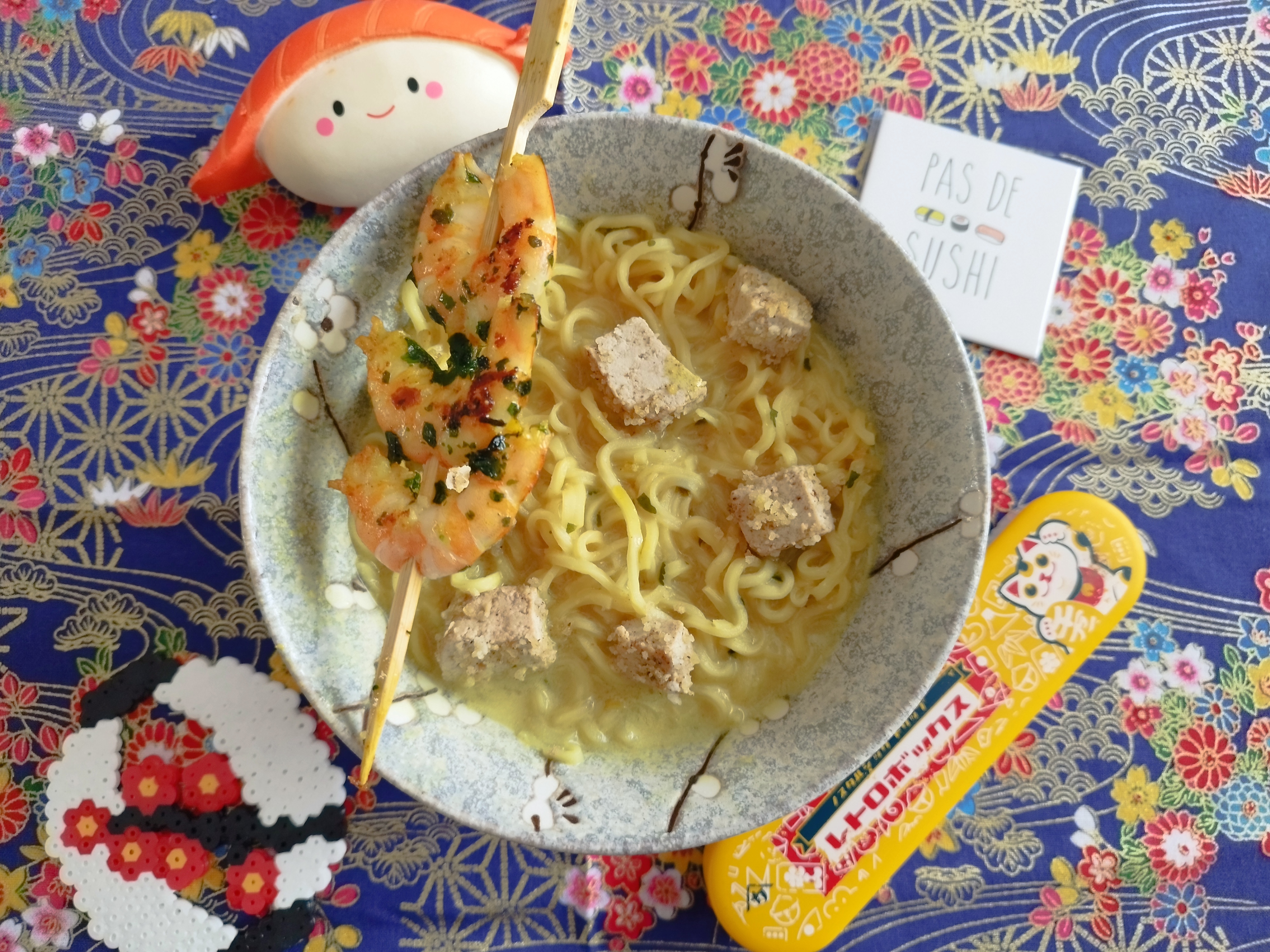 J’ai refait un ramen réconfortant. Sinon, j’ai beaucoup de mal à me concentrer sur mes lectures. Je n’ai pas trouvé le courage de partager mes créations en origami. Le rhume est plus costaud que je pensais et je suis inquiète pour mon chien.