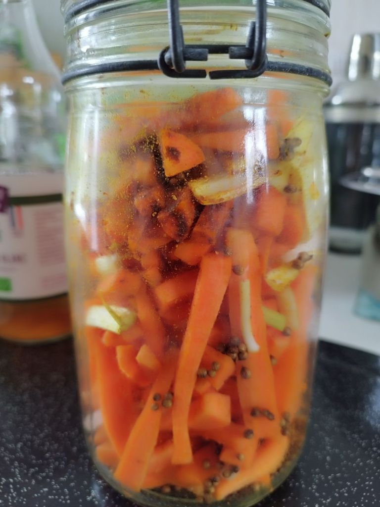 On a goûté les pickles et ils sont très bons ! J’ai préparé deux verrines banoffee pie. Ce sera ma recette de dimanche prochain.