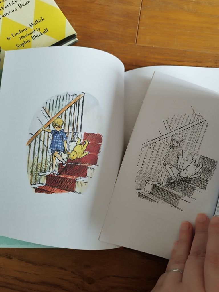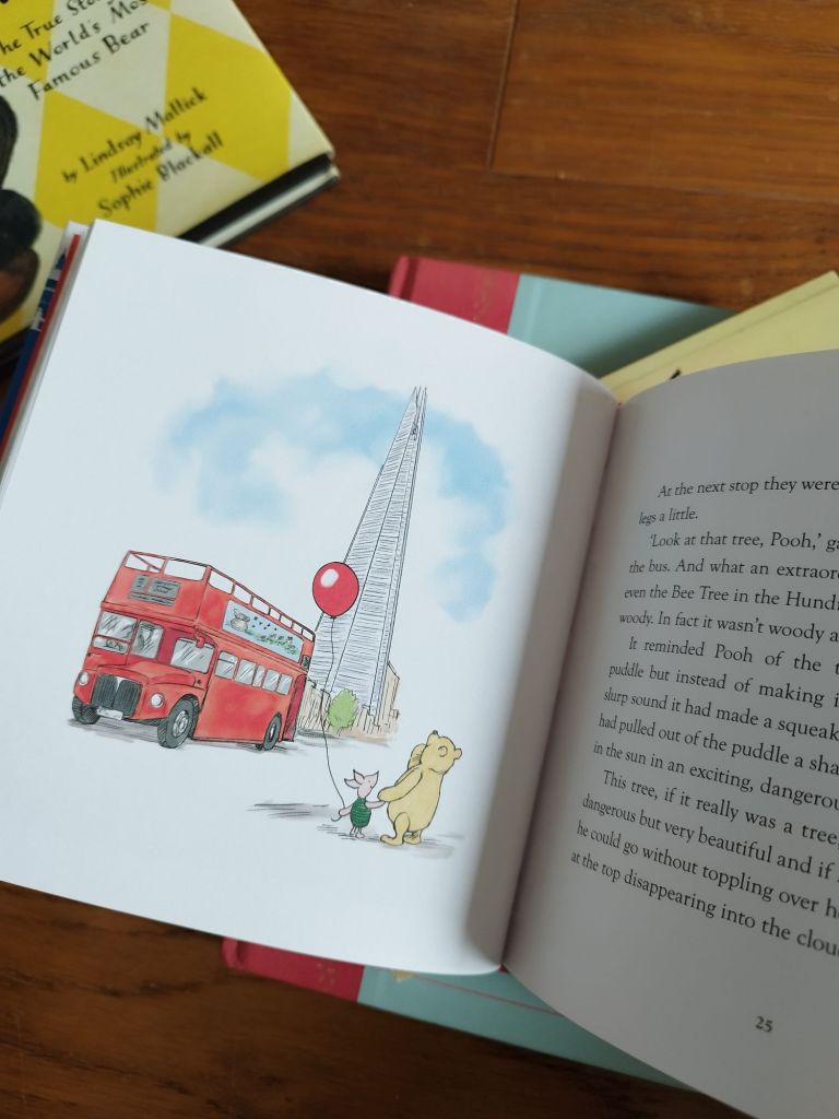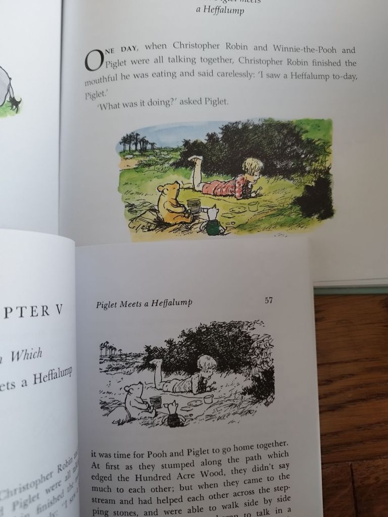 Et lorsque je suis allée à Londres, je me suis laissée tenter par plusieurs éditions : une avec des dessins en noir et blanc de E.H Shepard (couverture moutarde), une autre avec les dessins en couleur.
