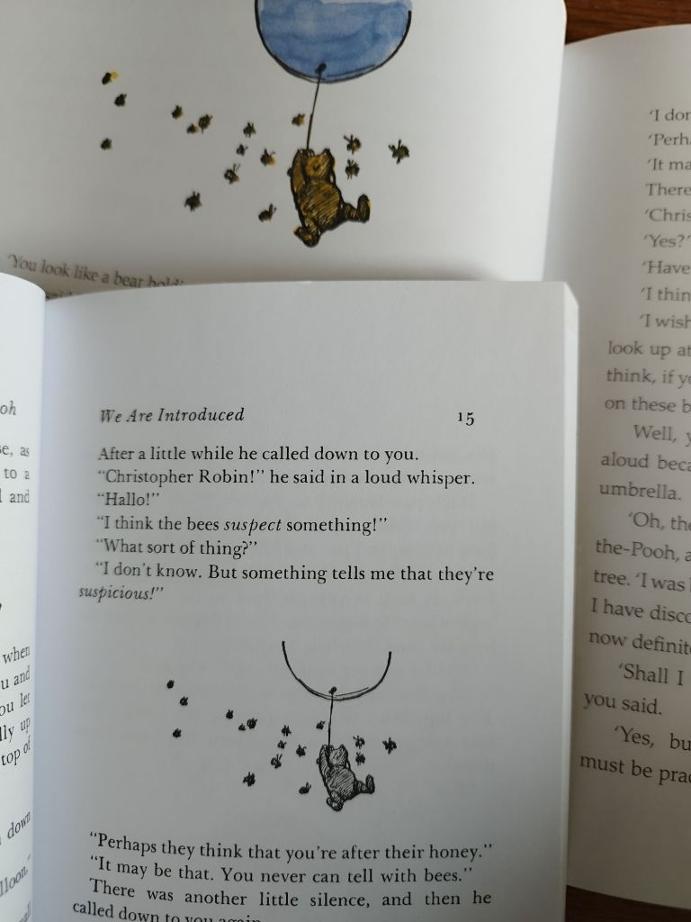 Je l’ai lu pendant mes pauses et je suis tombée sous le charme des dessins très doux d’Ernest H. Shepard et de ces petites histoires pleines de simplicité.