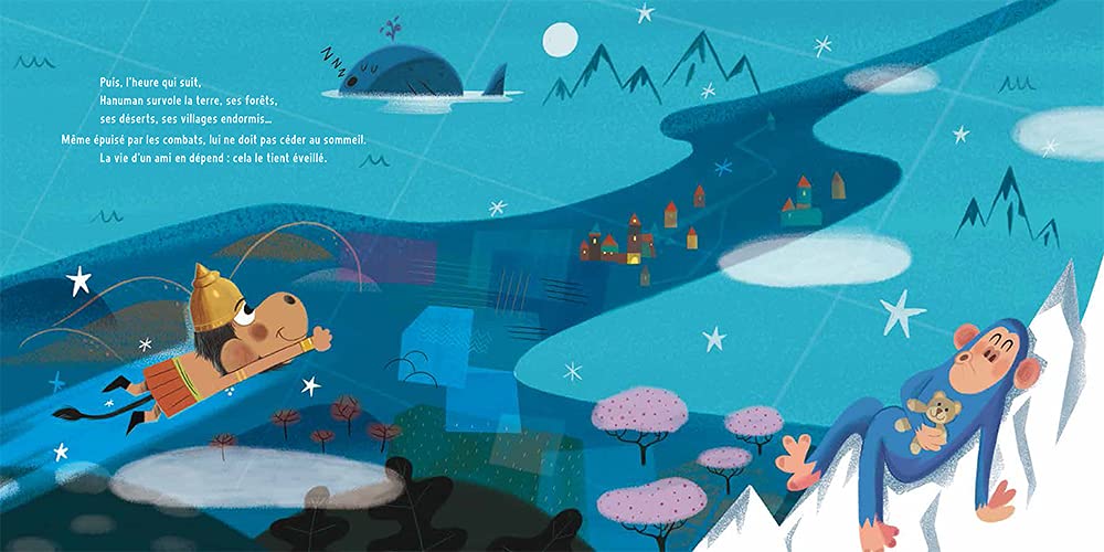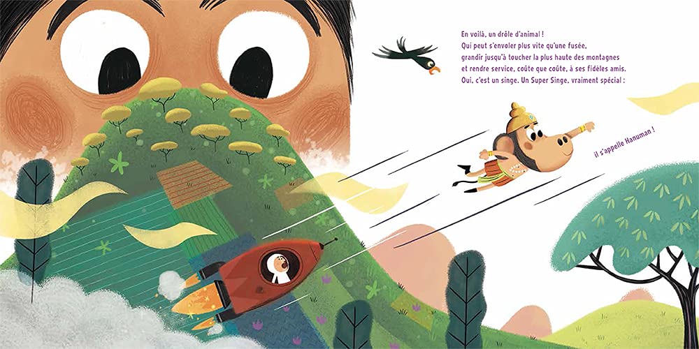 Hanuman est un singe et un personnage du Ramayana (grande épopée indienne). Il possède des super-pouvoirs ! Il sait voler et fait preuve de générosité. Afin de sauver un ami blessé par une flèche empoisonnée, il part à la recherche d’une plante magique qu’il doit rapporter avant le lever du soleil. Le temps presse !