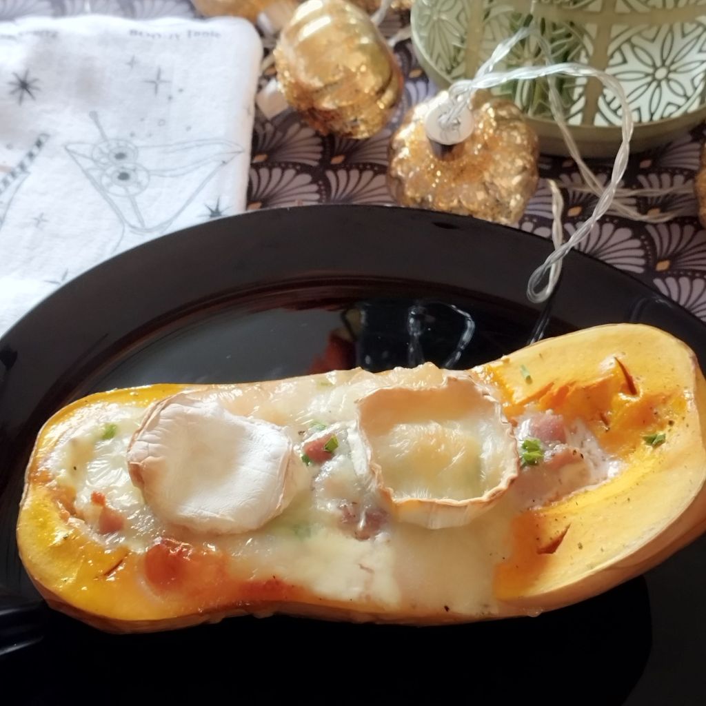 On s’est bien régalé ! Le butternut est fondant et avec le mélange crème, lardons, fromage de chèvre, c’est vraiment délicieux, nourrissant et assez réconfortant. Bon appétit et bon dimanche !